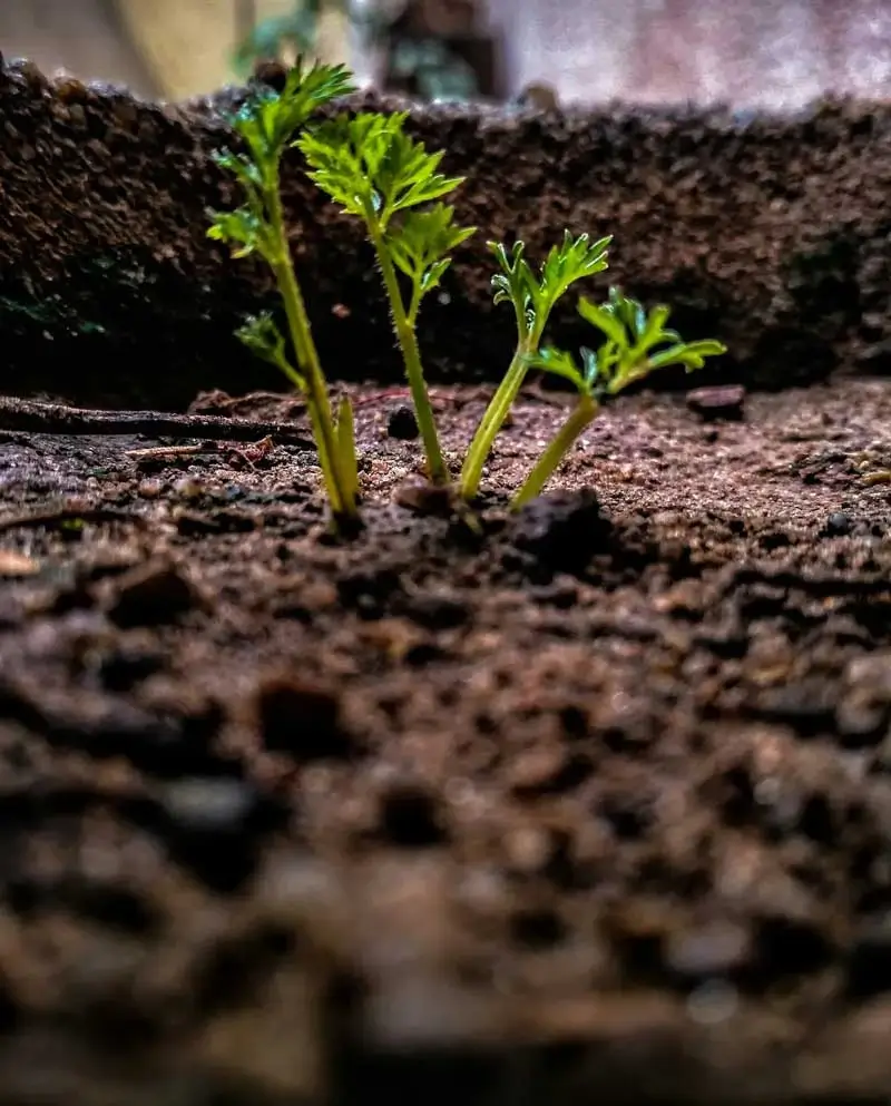 Carrots need room, and they need it from the beginning. Thinning when the first set of true leaves appear, to about one to two inches apart, allows each root to develop fully. If you realise later that you missed thinning, go ahead and do it; late is better than never.