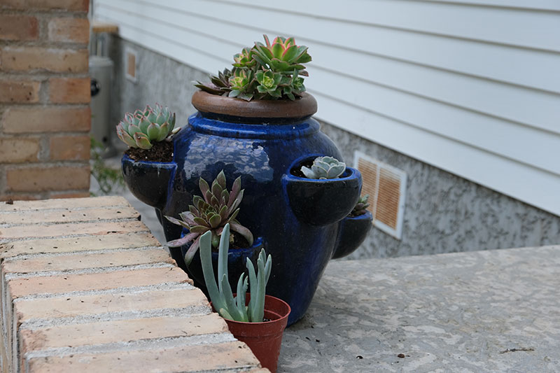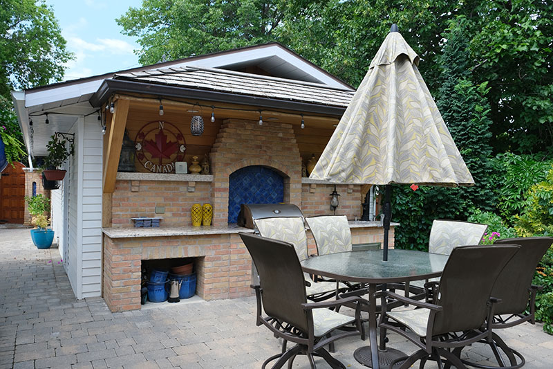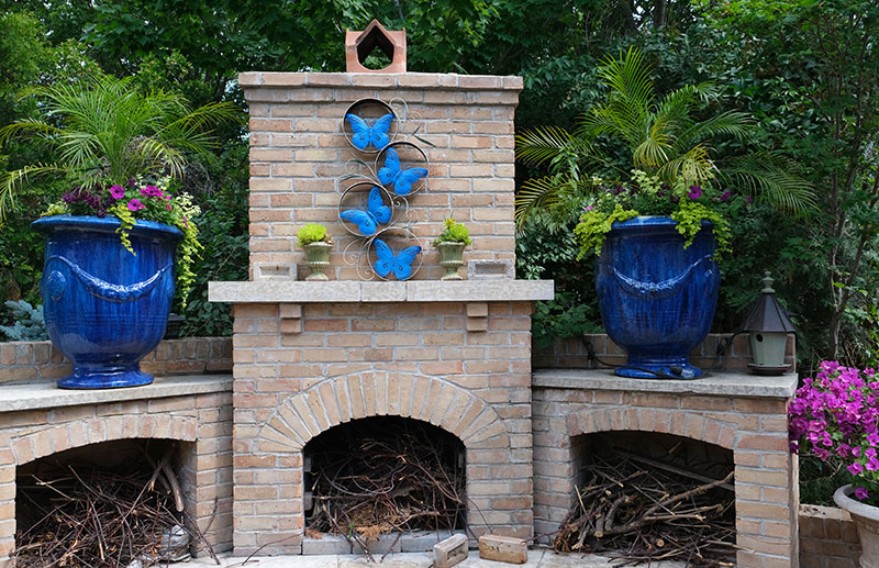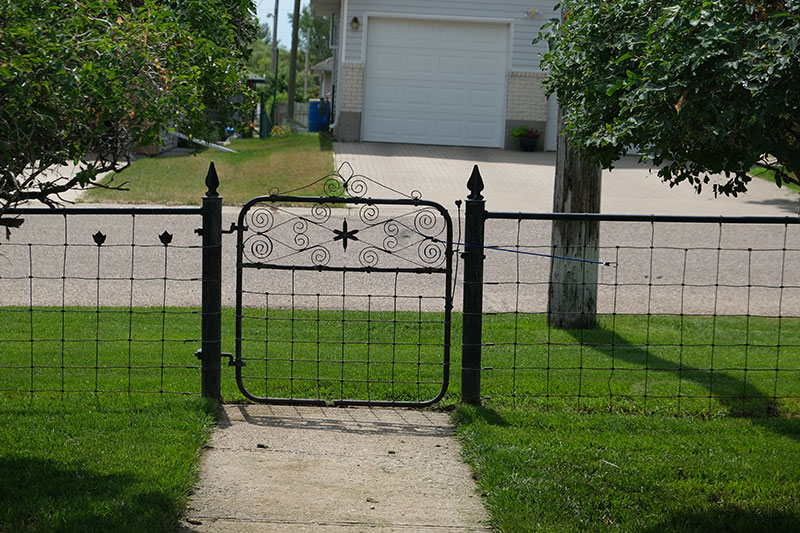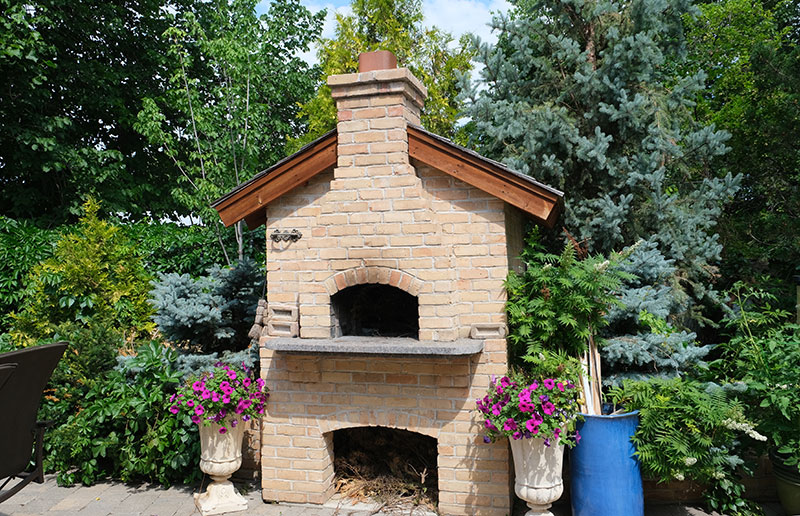 In its day, the Virden Auditorium was the centre for the performing arts in western Manitoba, according to Gordon Goldsborough of the Manitoba Historical Society. It was built, as was Doyle’s house, of a local brick made in Virden. In Doyle’s yard, which heavily features this brick, the master mason was his friend Rudy Leroy. He also constructed the pizza oven, the outdoor kitchen, and the huge stone fireplace that Doyle and Michelle have surrounded by comfortable couches and easy chairs. The yellow brick is set off by planters and ornamental features in blue, deepening in some cases to cobalt blue.