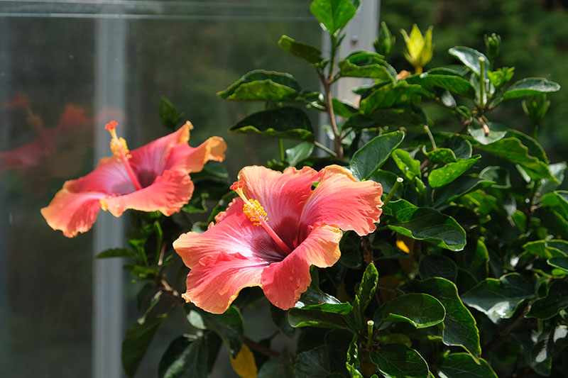 Exotics such a hibiscus and bougainvillea add punches of colour and enhance the tropical feeling promoted by the lush green on the setting.