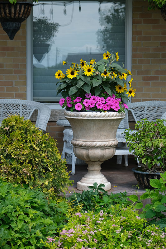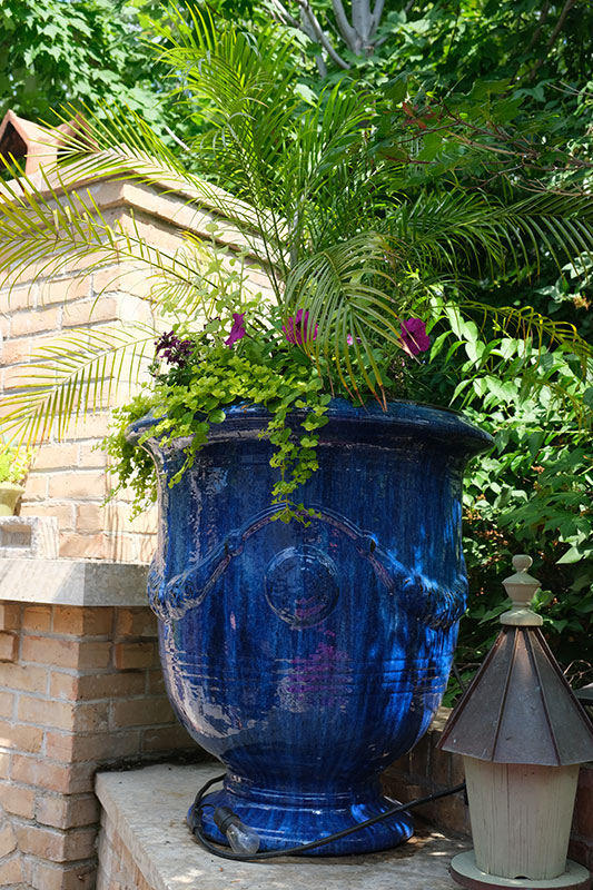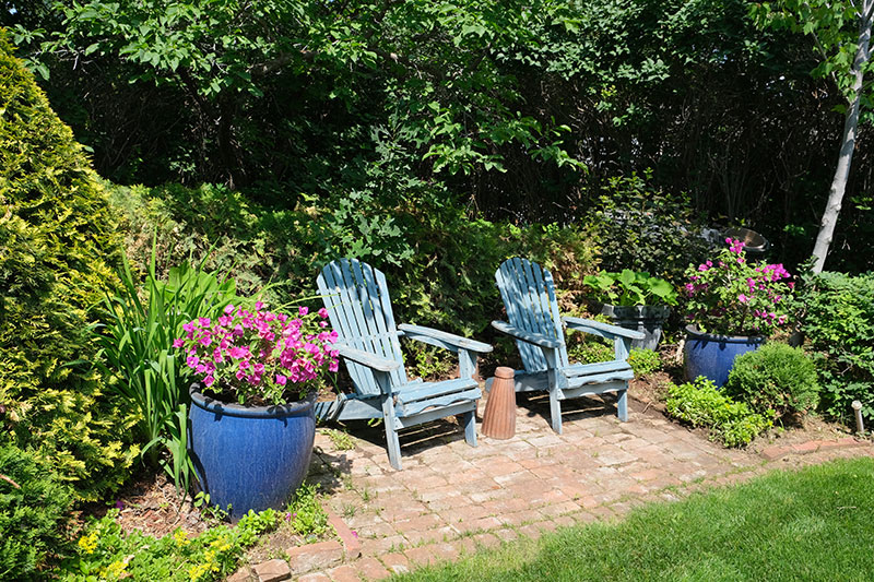 Doyle uses trees in a myriad of ways: planted in pleasing groups as ornamental features in the front garden to serve as a dense privacy shield between his property and that of the neighbour (who appreciates this as much as Doyle does), and a backdrop to day to day living in the beautifully designed courtyard at the back of his gracious old, brick house. “The house was bult in 1905 by William Thomas Manser who also built the Auditorium Theater in Virden in 1911,” he says with pride.