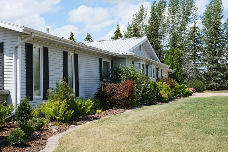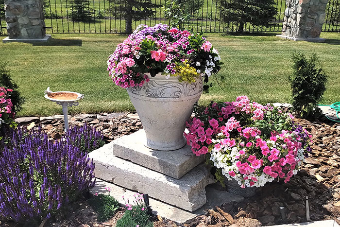This is southern Saskatchewan, big sky country in the heart of a farm. But here in Lorna’s yard, all is tamed and tidy.