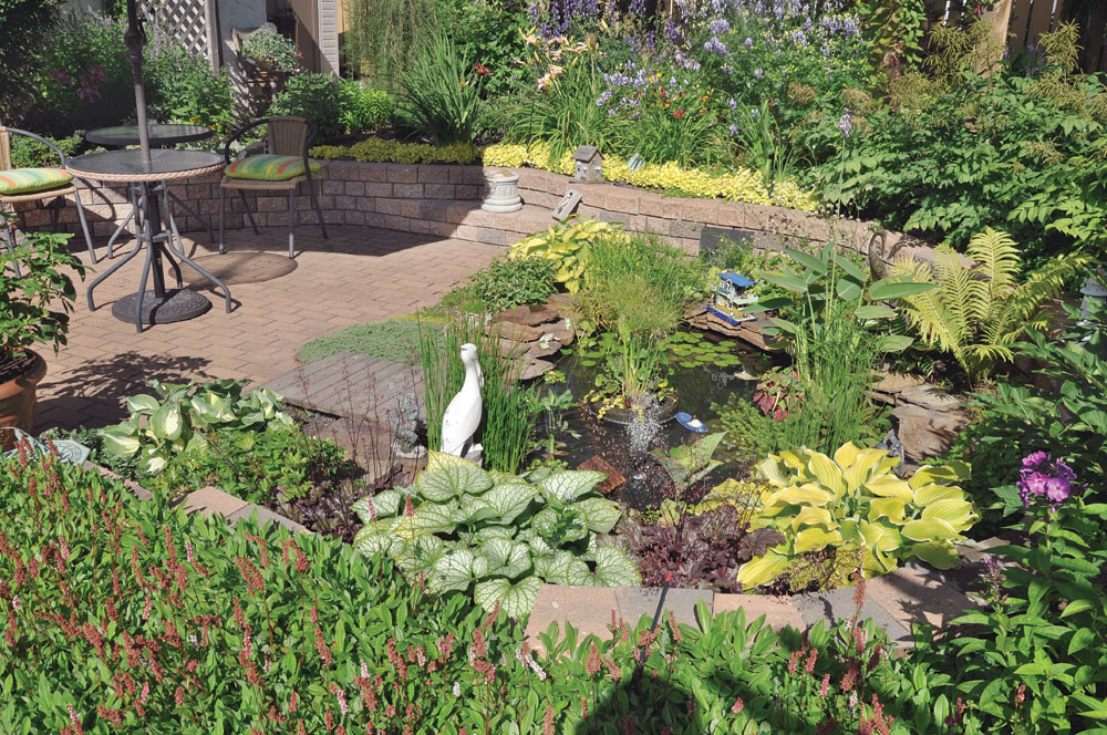 Jon and Pat love their lawn-less yard so much they encourage others to try it. “Homeowners should consider going lawn-less, especially if they don’t have children who need play space. Dry stream beds, ponds, seating areas and paths can fill spaces around planting beds just as nicely as lawn and are generally lower maintenance. However, filling your yard with rock will just make more work as debris fills in around the rocks and weeds grow,” explains Jon.