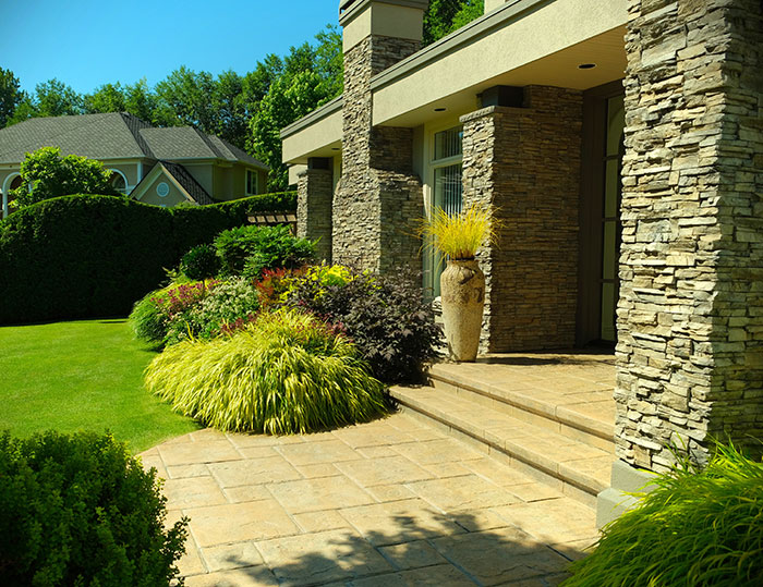 The neatly groomed front yard of the brick house is a gardener’s dream of tidy grasses and trimmed and topiaried shrubs, each carefully chosen to set off the other in a pleasing kaleidoscope of colour and texture.