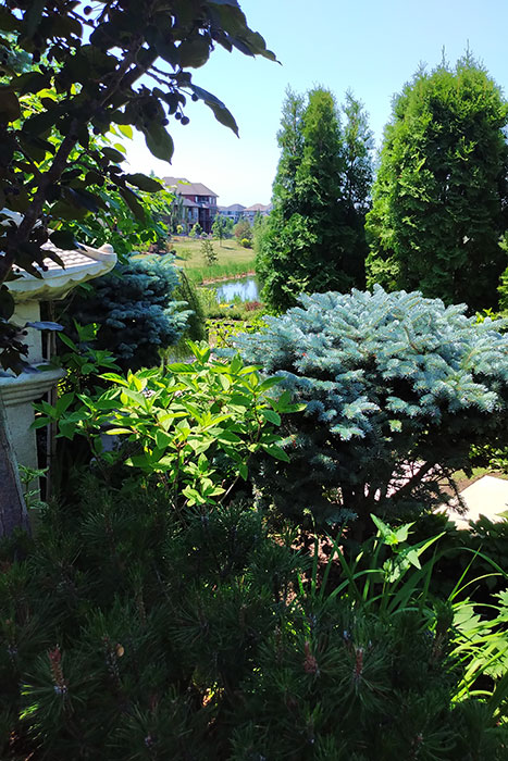 Colin chuckles. “That was Leona’s sister,” he declares. “You covered her garden two years ago.” Memories of Laura Lucyshyn, her husband, Steve, and the two little grandsons they babysat come flooding back. The garden was very different in some ways but very similar in style and sensibility. It was not as large as this garden, although just as lovely. And the badge of sisterhood is that sparkling fountain. Steve got a deal on four of these some years ago and gave one to Leona and Colin, the lucky things.